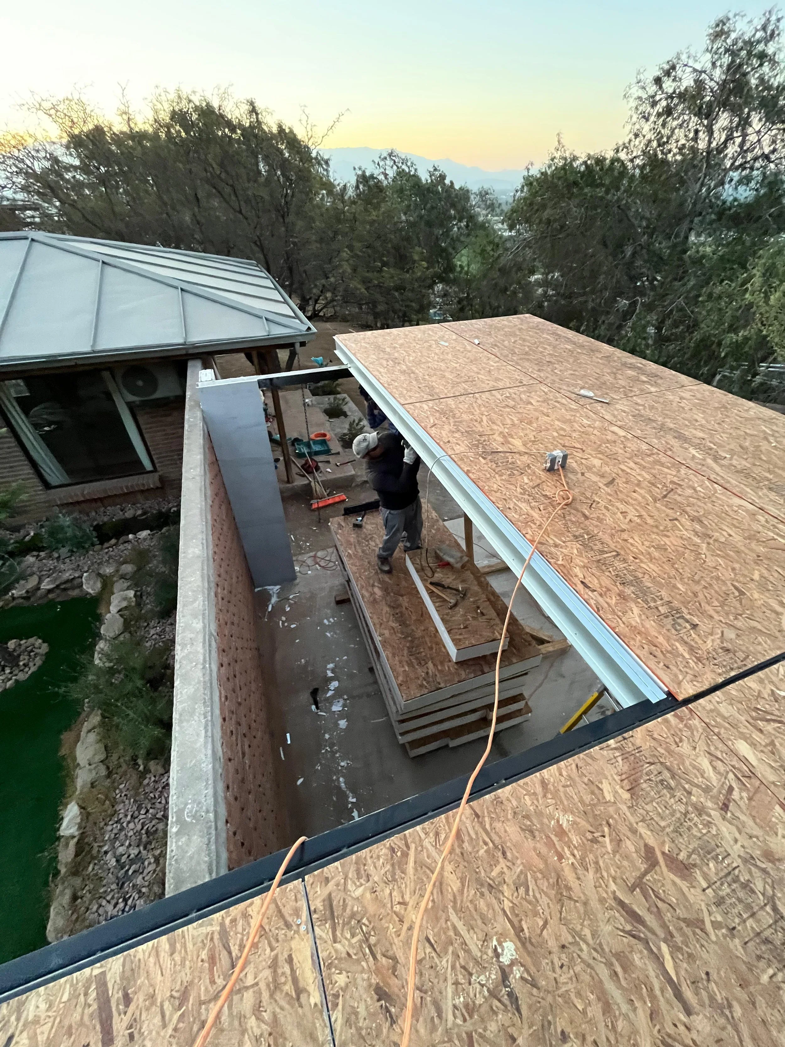 Construido con paneles MGO de 130 mm para muros perimetrales, ofrece una estructura robusta y resistente al fuego, ideal para entornos deportivos de alto tráfico. La cubierta utiliza paneles OSB de 180 mm, garantizando durabilidad y aislamiento eficiente. Además, la losa se estructuró con un arco estructural, aportando un diseño distintivo que optimiza el espacio interior y refuerza la estabilidad.